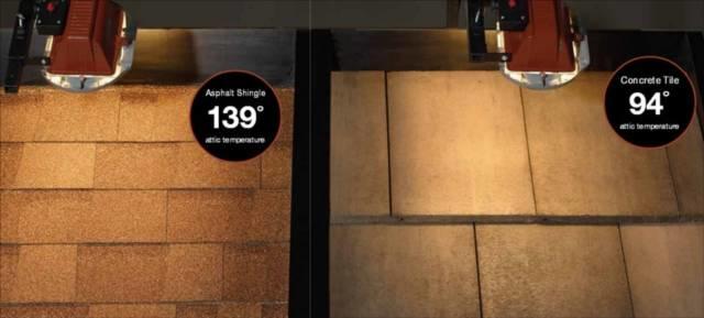 Attic temperatures measured using identical heat sources simulating the suns radiation comparing Boral Cool Roof System to a common asphalt shingle installation. The result is less heat in the attic and lower energy bills.